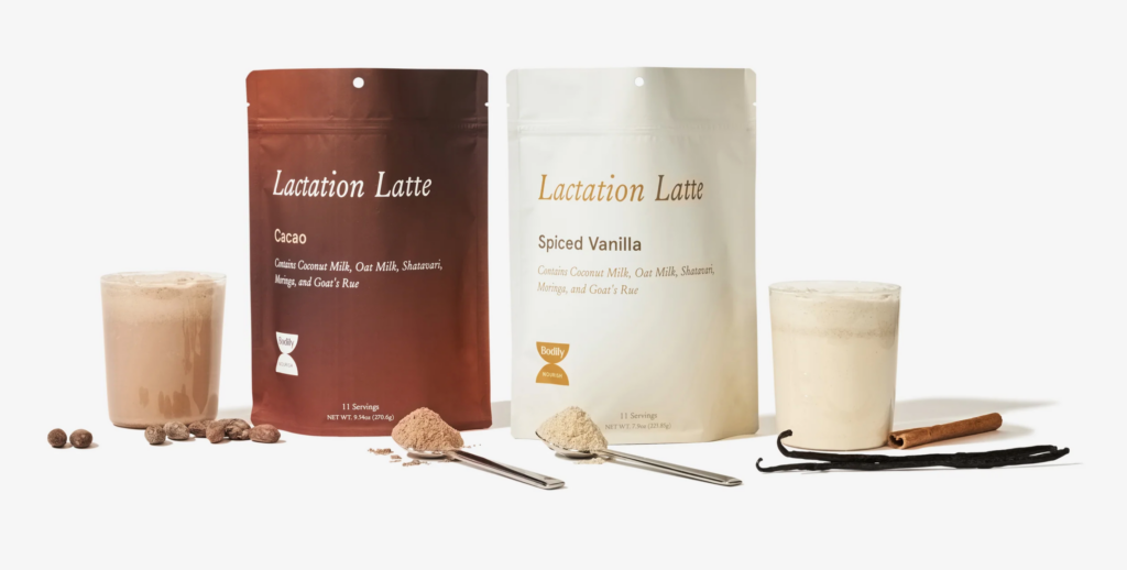 Packed with organic lactation superfoods to support your feeding journey, the lactation latte mixes by Bodily are an excellent caffeine-free option that fulfills your “coffee ritual” without caffeine.