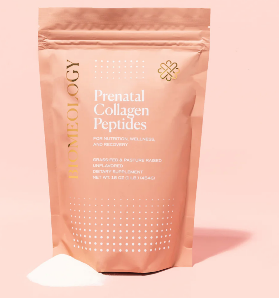 If you’re looking for postpartum collagen that’s completely colorless, odorless, and 100% additive-free, the Prenatal Collagen Peptides from Biomeology are a fabulous option.