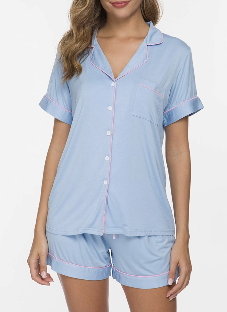An excellent option for those warm climates is the Ekouaer Nursing Pajamas. This 2-piece set is comprised of a tank top designed for nursing and shorts with an adjustable waistband.