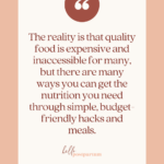 I firmly believe there are several proponents for healing from having a baby, one of which is prioritizing nutrient-dense food. The reality is that quality food is expensive and inaccessible for many, but there are many ways you can get the nutrition you need through simple, budget-friendly hacks and meals.