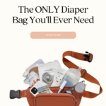 When looking for a bag, consider a crossbody or backpack that easily comes on and off, provides quick access to the item you’re looking for, provides a built-in changing pad, and has multiple compartments to keep things organized.
