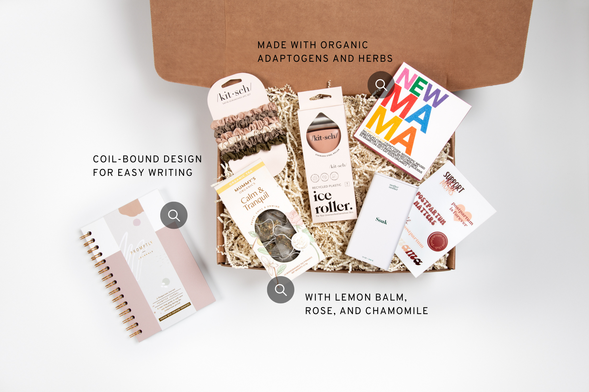 Aunque el cuidado personal ciertamente parece diferente después del nacimiento, es igualmente importante. Este kit de cuidado personal fue diseñado pensando en las nuevas mamás e incluye elementos intencionales para ayudar a crear un (precioso) momento de calma.
