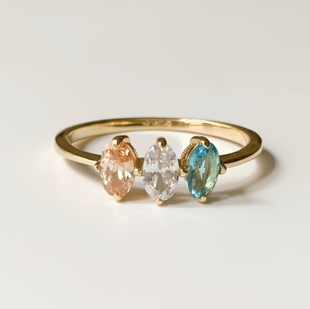 Another dainty and stackable ring favorite is the Minimalist Birthstone Ring. The price is right, it’s handmade from high-quality materials, and you can select the stone (or stones) based on your baby’s birth month.