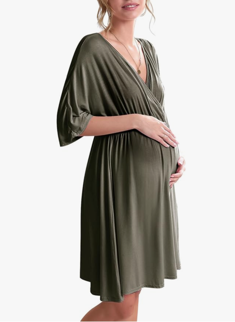 For a practical piece that you can wear during pregnancy, labor, and postpartum, consider the 3-in-1 Nursing Nightgown by Ekouaer.